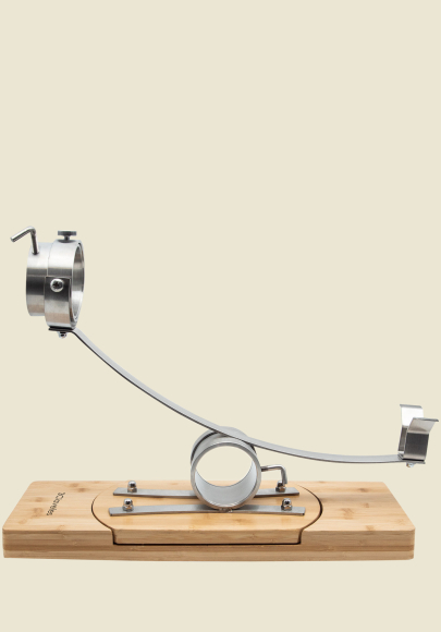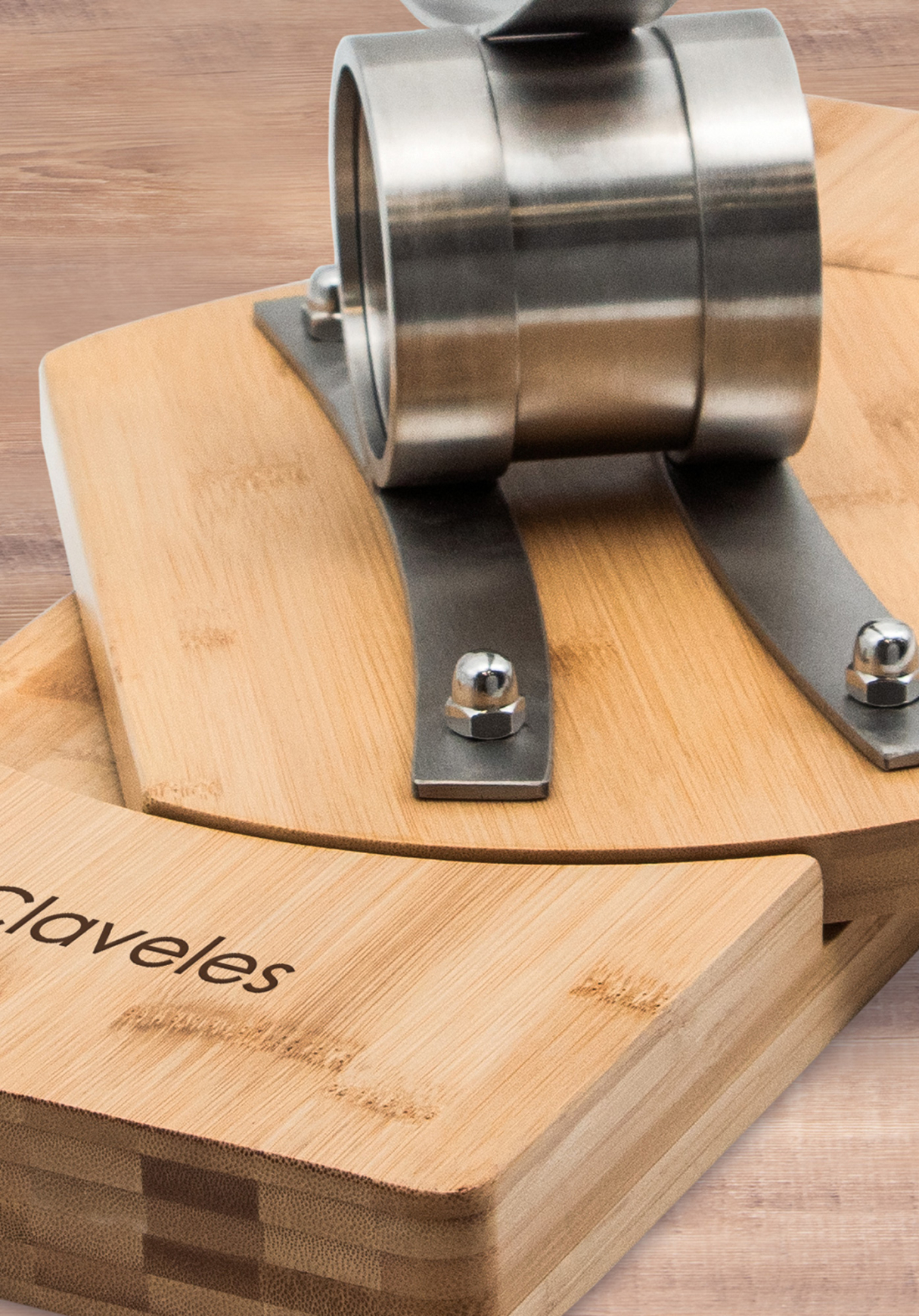 A Tres Claveles vállalat professzionális sorozatának csúcskategóriás modellje, amely kések és jamón szeletelésére szolgáló állványok gyártására specializálódott. Ez az állvány kiváló minőségű forgatható fejrésszel rendelkezik, amely lehetővé teszi a jamón stabil, egyszeri rögzítését és annak könnyű forgatását a szeletelés során. Más professzionális modellekkel szemben ez a típus függőleges tengely mentén is forgatható, valamint a dőlésszög beállítását is lehetővé teszi, így maximális rugalmasságot biztosít a munka során.